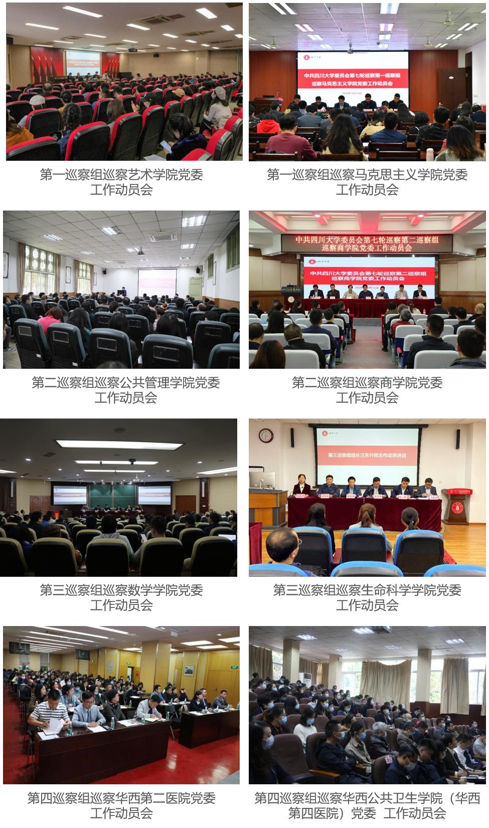 经学校党委批准,本轮巡察集中对艺术学院、数学学院、生命科学学院、华西第二医院、华西公共卫生学院(华西第四医院)、公共管理学院、商学院、马克思主义学院等8个院级党委开展常规巡察。近日,各巡察组分别召开巡察进驻工作动员会,各巡察组组长作动员讲话并通报有关工作安排,校党委巡察办相关负责人受学校巡察工作领导小组委托就被巡察党组织支持和配合巡察提出工作要求,各被巡察党组织主要负责人作表态发言。
