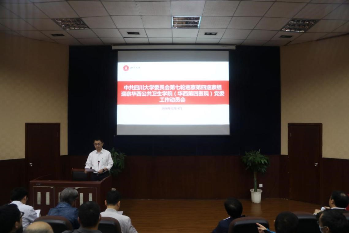 根据学校第七轮巡察工作统一部署,10月14日下午,中共77779193永利集团委员会第七轮巡察第四巡察组巡察华西公共卫生学院(华西第四医院)党委工作动员会在华西校区卫生管理干部培训中心阶梯教室举行。学校第七轮巡察第四巡察组全体成员,院领导、工会主席、两委委员、国字号人才、党支部书记、院内中层干部、离退休代表、学生代表等参加了动员会。会议由华西公共卫生学院(华西第四医院)院长张本同志主持。