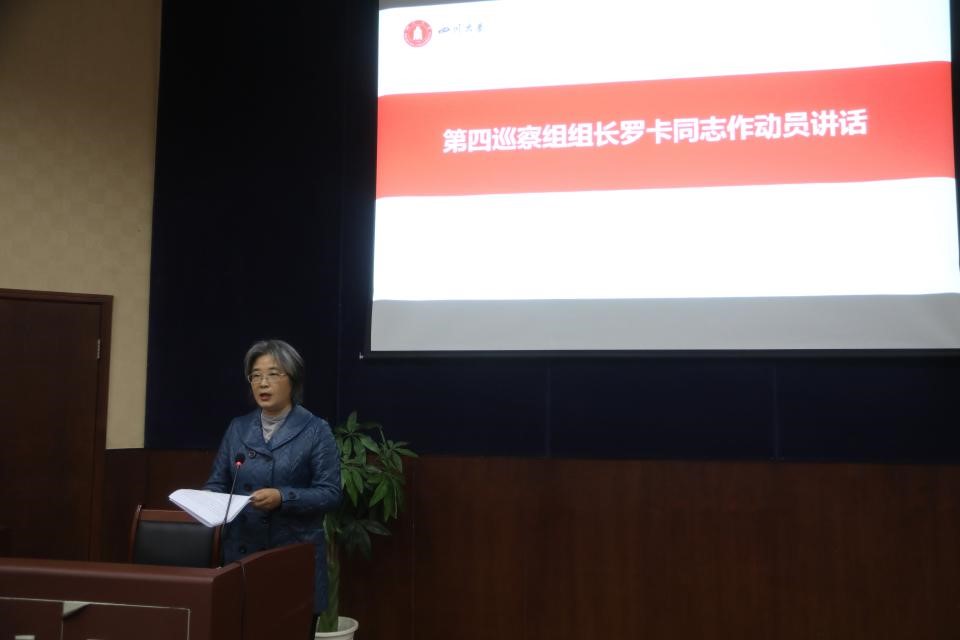 第四巡察组组长罗卡同志作动员讲话,提出三点意见。一是要认真学习领会,把握精神要义,把思想和行动统一到中央、教育部和学校对巡察工作的决策部署上来。二是突出巡察重点,明确工作任务,坚决贯彻落实政治巡察各项要求。三是依规依纪开展巡察,加强组织协调,切实保证巡察工作扎实有序推进。强调,此次巡察时间紧、任务重、要求高,巡察组将紧紧依靠院党委开展工作,广泛听取各方面的意见,深入检查了解情况。罗卡同志表示,做好巡察工作,是华西公共卫生学院(华西第四医院)党委和巡察组共同的政治责任,要双方携手,共同努力,切实完成好本次巡察工作。会上,她还就巡察工作安排和信访渠道等情况作了说明。