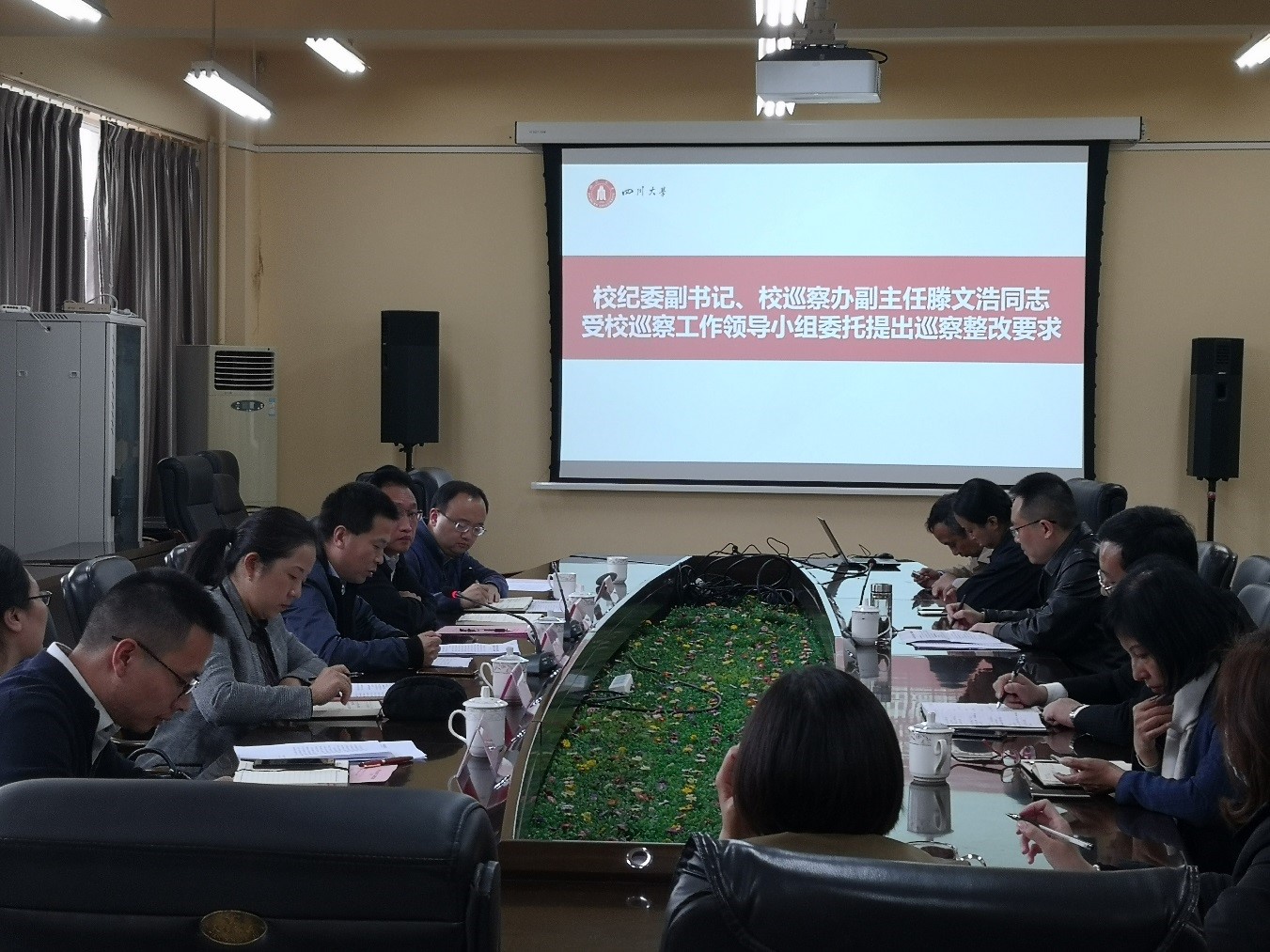 10月10日,学校党委第六轮巡察第二巡察组巡察党委学生工作部(处)情况反馈会在望江校区文华活动中心410会议室举行。第二巡察组组长韩杰,副组长贾秀娥、吴近名向党委学生工作部(处)部长陈森反馈巡察情况后,韩杰同志代表巡察组进行了大会反馈。校纪委副书记兼纪委办公室主任、监察处处长、校党委巡察办副主任滕文浩出席会议并提出巡察整改工作要求。党委学生工作部(处)部长陈森主持会议作表态发言。校党委组织部副部长范瑾参加会议。