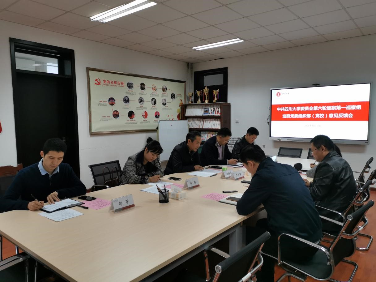 10月10日,学校党委第六轮巡察第一巡察组巡察党委组织部(党校)情况反馈会在望江校区行政楼415会议室举行。第一巡察组组长范嗣云,副组长王绍朋、杨梅向党委组织部(党校)常务副部长王智猛反馈巡察情况后,范嗣云同志代表巡察组进行了大会反馈。学校党委巡察办专职副主任李玉峰受学校党委巡察工作领导小组委托对巡察整改工作提出要求。党委组织部(党校)常务副部长王智猛主持会议并作表态发言。