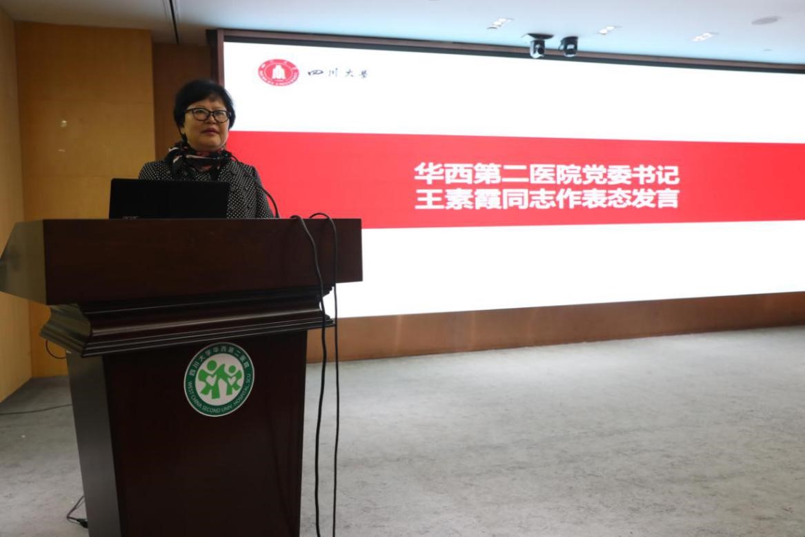 华西第二医院党委书记王素霞代表医院党委作表态发言。表示,医院党委深刻领会党中央和教育部关于巡视巡察的总体要求和精神要义,坚决支持和拥护学校党委第七轮巡察的部署和要求。将切实提高政治站位,深刻认识巡察工作的重要意义,把接受此次巡察作为对医院工作把脉指导的难得机会,全力支持,主动服务,积极配合巡察组开展工作。将正视问题不回避,欢迎、支持广大干部职工实事求是提出意见、反映情况。将切实以接受巡察工作为契机,推动医院各项工作再上新台阶。