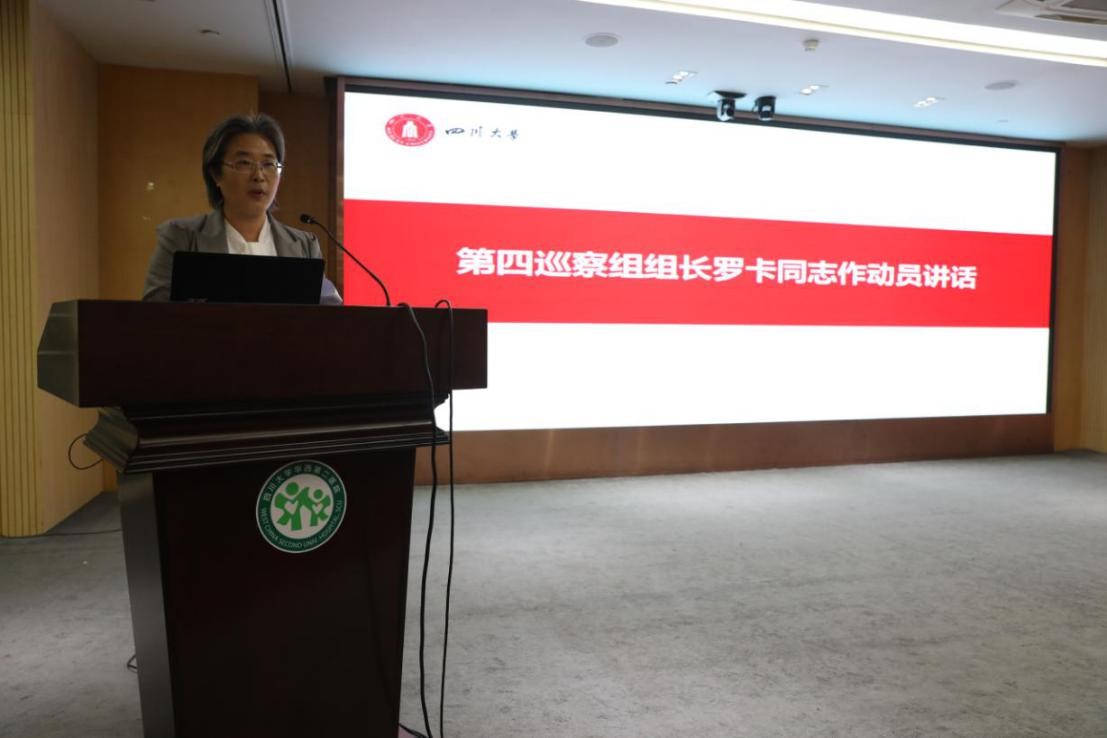 第四巡察组组长罗卡作动员讲话,提出三点意见。一是要认真学习领会,把握精神要义,把思想和行动统一到中央、教育部和学校对巡察工作的决策部署上来。指出,学校开展第七轮巡察是为学校打赢“大战”、备好“大考”、推进“两个伟大”奋斗目标提供坚强政治保障。二是突出巡察重点,明确工作任务,坚决贯彻落实政治巡察各项要求。将紧密围绕“四个落实”和“六个紧盯”,始终做到方向不偏、目标不散、重点突出、问题聚焦,保质保量完成好学校交付的巡察任务。三是依规依纪开展巡察,加强组织协调,切实保证巡察工作扎实有序推进。强调,此次巡察时间紧、任务重、要求高,巡察组将紧紧依靠医院党委开展工作,广泛听取各方面的意见,深入检查了解情况。罗卡同志强调,做好巡察工作,是华西第二医院党委和巡察组共同的政治责任,要双方携手,共同努力,切实完成好本次巡察工作,推动改革、促进学校和医院事业发展。会上,她还就巡察工作安排和信访渠道等情况作了说明。