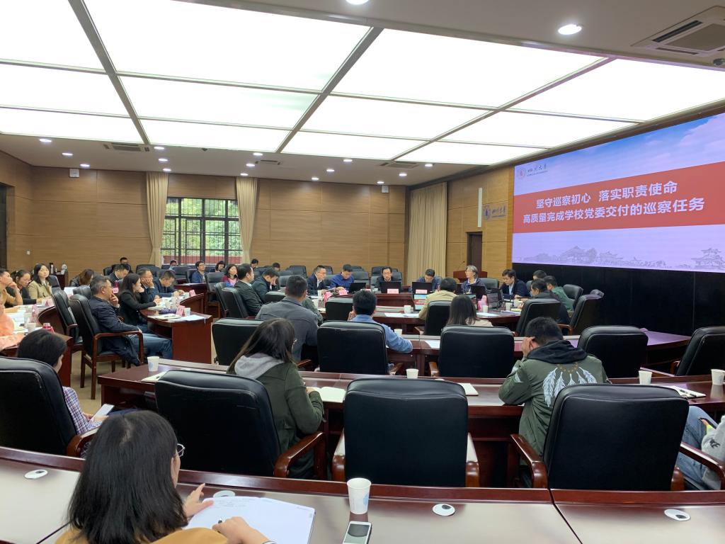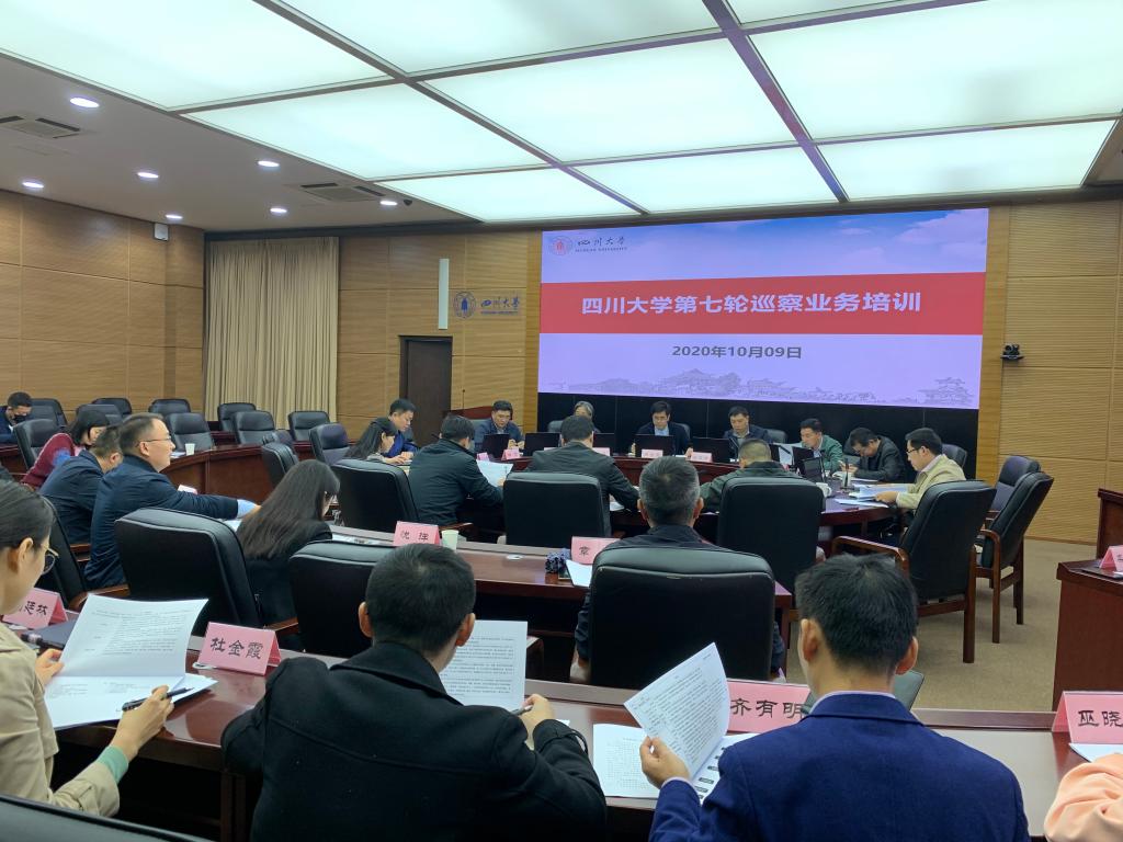 为提升巡察干部业务能力,保障学校党委第七轮巡察工作高质量完成,按照学校党委统一部署,10月9日下午,校党委巡察办在望江校区明德楼四楼一会议室组织开展了学校第七轮巡察业务培训。巡察办专职副主任李玉峰主持并作巡察业务培训,机关党委副书记兼纪委书记韩杰作巡察工作经验分享,巡察办综合科科长何郁嵩就本轮巡察嵌入三个专项检查相关事项作介绍。第七轮巡察各巡察组全体成员、专项检查组全体成员、巡察办工作人员等参加培训。