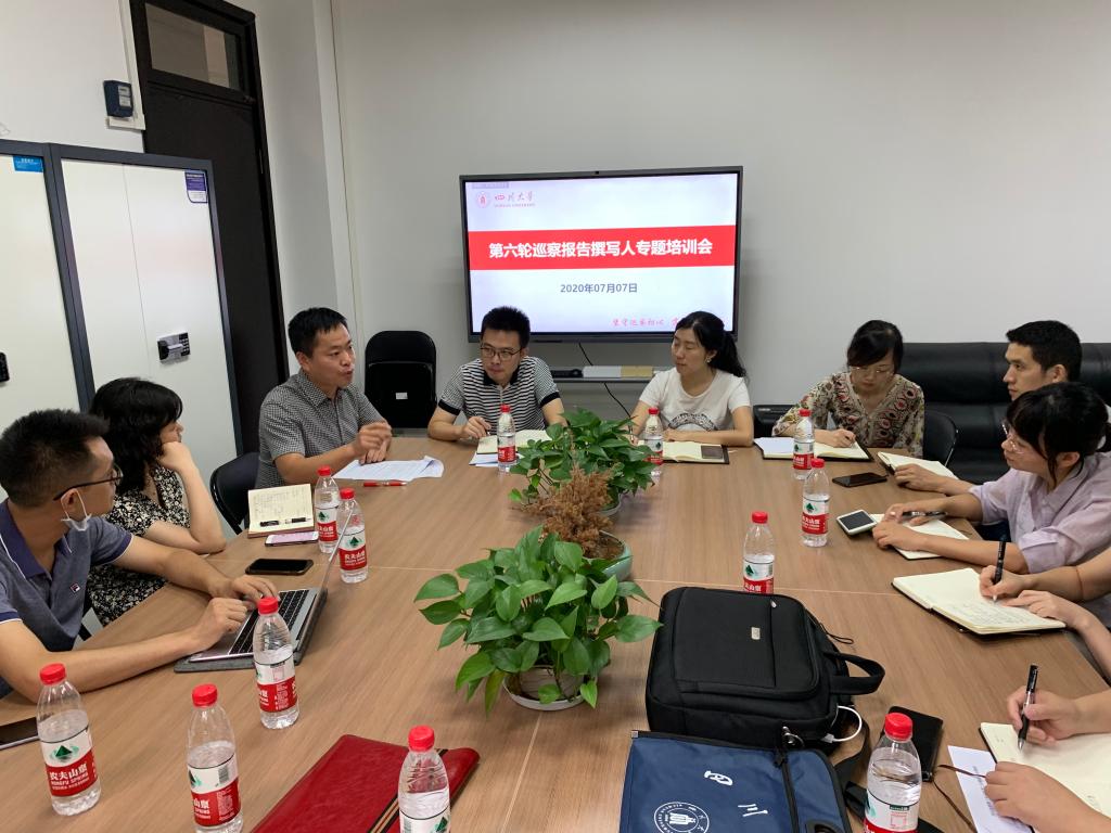 为切实提高巡察报告撰写能力,提升报告质量,7月7日下午,校巡察办在望江校区明德楼202举办了第六轮巡察报告撰写人专题培训会。 校巡察办专职副主任李玉峰作了专题培训报告。指出,巡察报告是巡察成果最集中的载体,精准到位写好报告,意义十分重要,作用非常关键。他从基本要求、撰写关键、提好对策、做好校核等四个方面对巡察报告的写作进行了全面培训,着重就如何取舍素材、归纳提炼、精准表述、印证观点等问题进行了系统讲解和说明。 会上,各巡察组报告撰写人与巡察办人员就具体问题进行了深入交流和热烈讨论。