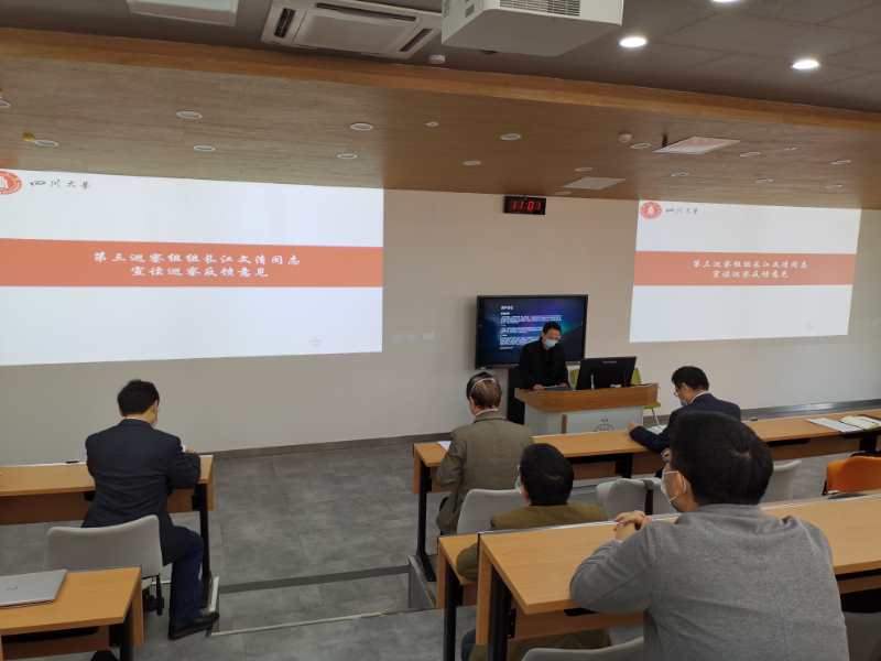 3月31日,学校党委第四轮巡察第三巡察组巡察材料科学与工程学院党委情况反馈会在望江校区基础教学楼C101举行。第三巡察组组长江文清,副组长黄园向材料科学与工程学院党政主要负责人反馈巡察情况后,江文清同志代表巡察组进行了大会反馈。学校党委组织部常务副部长、校巡察办副主任王智猛参加会议并对巡察整改工作提出要求。学院党委书记尹光福作表态发言,院长刘颖主持会议。