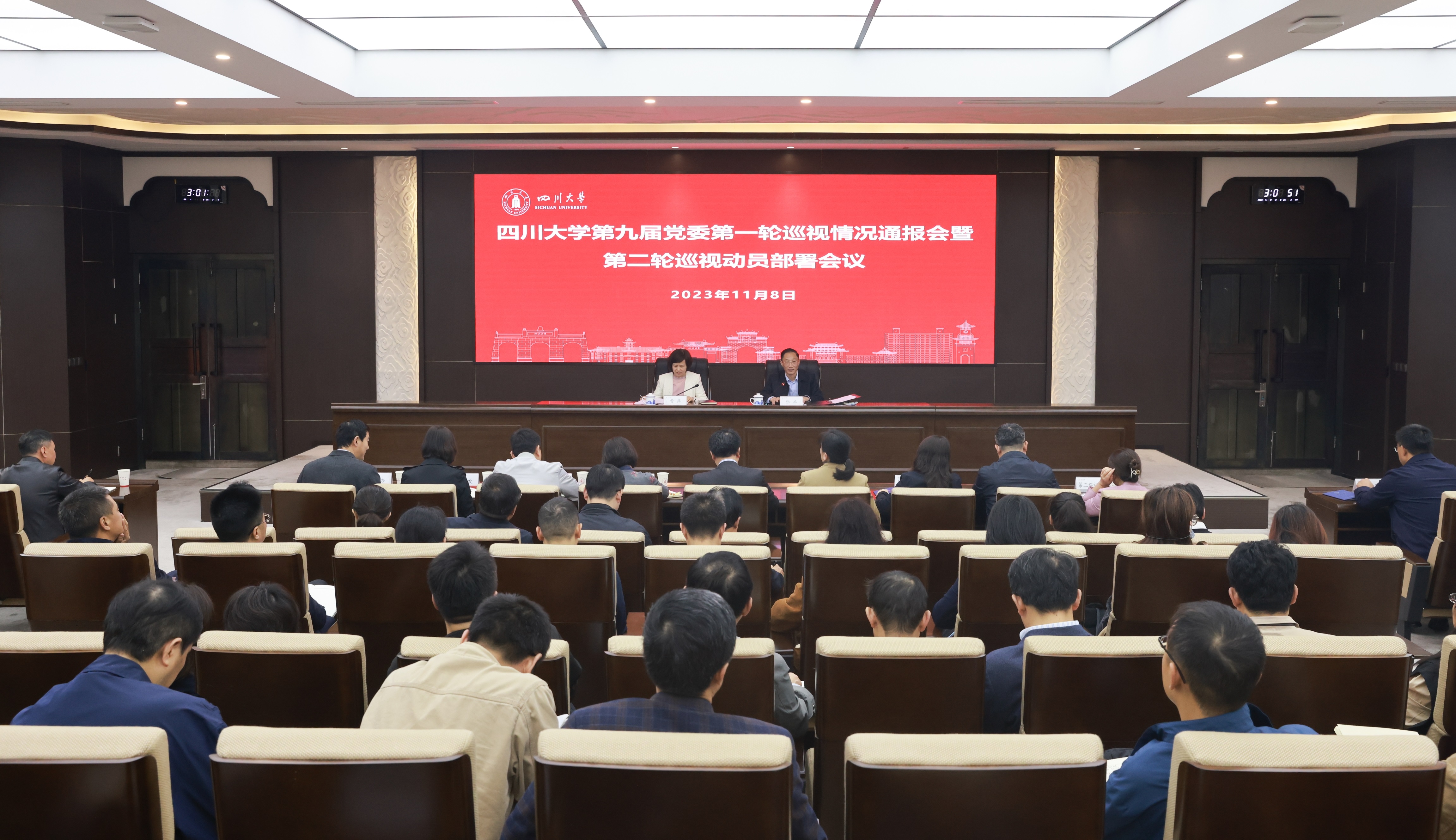 11月8日,学校召开第九届党委第一轮巡视情况通报会暨第二轮巡视动员部署会,进行了集中反馈。会议传达学习了习近平总书记关于巡视工作的最新重要指示精神和习近平总书记听取二十届中央第一轮巡视情况汇报时的重要讲话精神,通报了巡视发现的主要问题,对抓好第一轮校内巡视整改和成果运用作出部署。学校机关部处、业务单位主要负责人,学院(医院、系)党委(党总支、直属党支部)书记,第二轮校内巡视各巡视组、专项检查组全体成员参加会议。