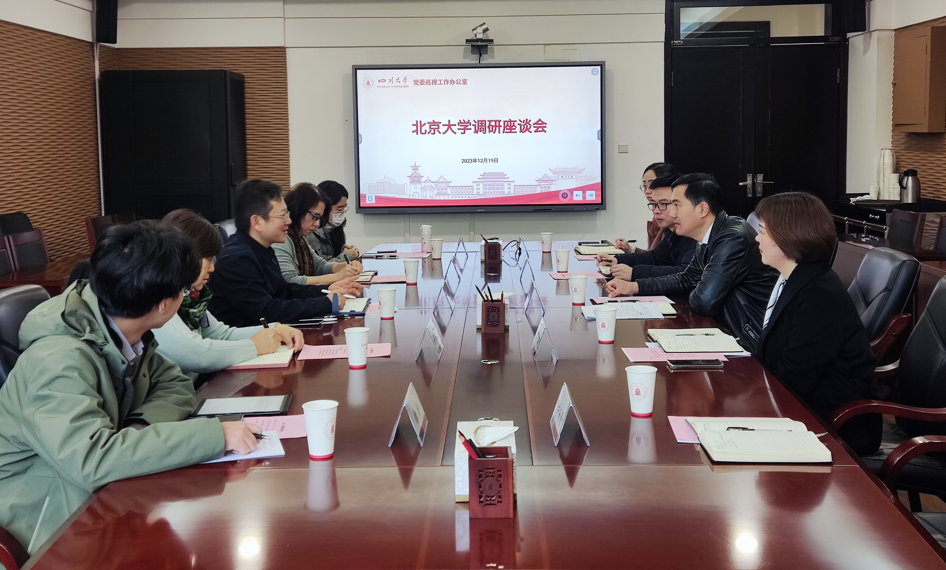 12月19日上午,北京大学纪委副书记、党委巡视办公室主任胡少诚一行5人来我校调研交流。会上,双方围绕校内巡视机构和巡视队伍建设、开展专项巡视工作、贯通协调各类监督、加强巡视整改和成果运用、推动巡视工作信息化等方面的经验做法进行了深入研讨。