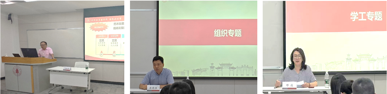 本次培训紧扣“学生为根、育人为本”本科教育教学专项巡视主题,邀请了教务处处长党跃武、组织部副部长苏德强、学工部副部长邓薇、教工部工作人员杜金霞,围绕本科教育教学、“三个一流”创建活动、新时代师德师风建设等本轮巡视重点进行了讲解。巡视办副主任王燕,工作人员何郁嵩、许海青、戢觅之,结合工作实践,对巡视工作重点环节、个别谈话、问题底稿制作、单机系统使用等方面进行了辅导。