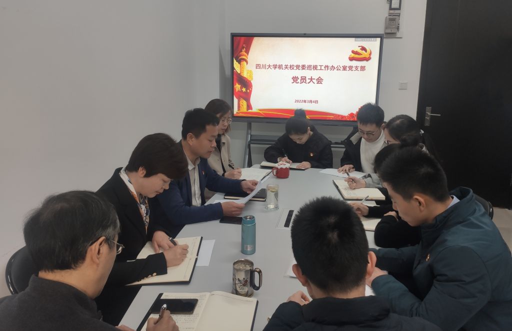 2022年3月4日上午,校党委巡视办党支部在望江校区明德楼204会议室召开党员大会,选举第一届党支部委员,开展2021年党支部组织生活会和民主评议党员工作。会议由党支部书记李玉峰主持。