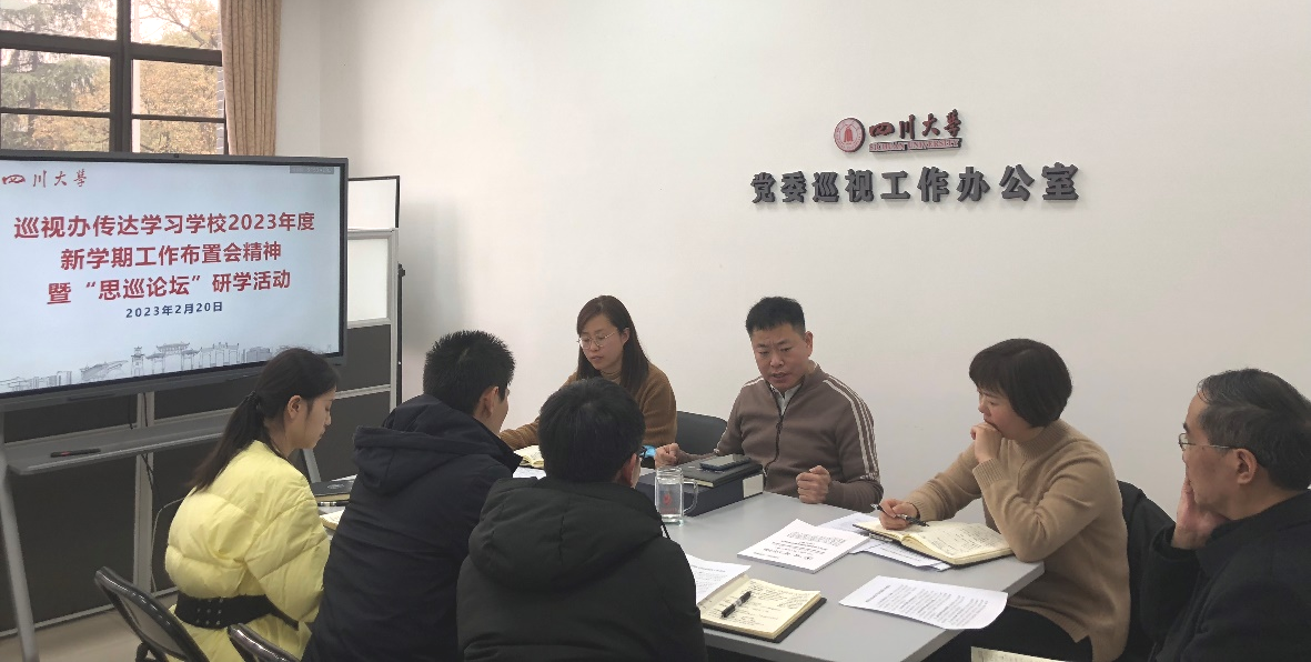 为贯彻落实学校2023年度新学期工作布置会精神,深入研讨2023年校内巡视工作,2月20日上午,党委巡视工作办公室在望江校区办公楼211会议室开展了传达学习学校2023年度新学期工作布置会精神暨“思巡论坛”研学活动。活动由校纪委副书记、党委巡视办主任李玉峰主持。