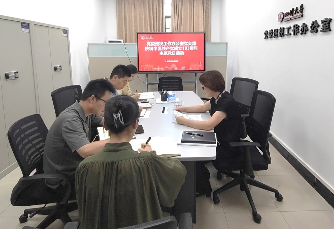 2024年7月1日,巡视办党支部在望江办公楼211室开展庆祝中国共产党成立103周年主题党日活动。全体党员参加。