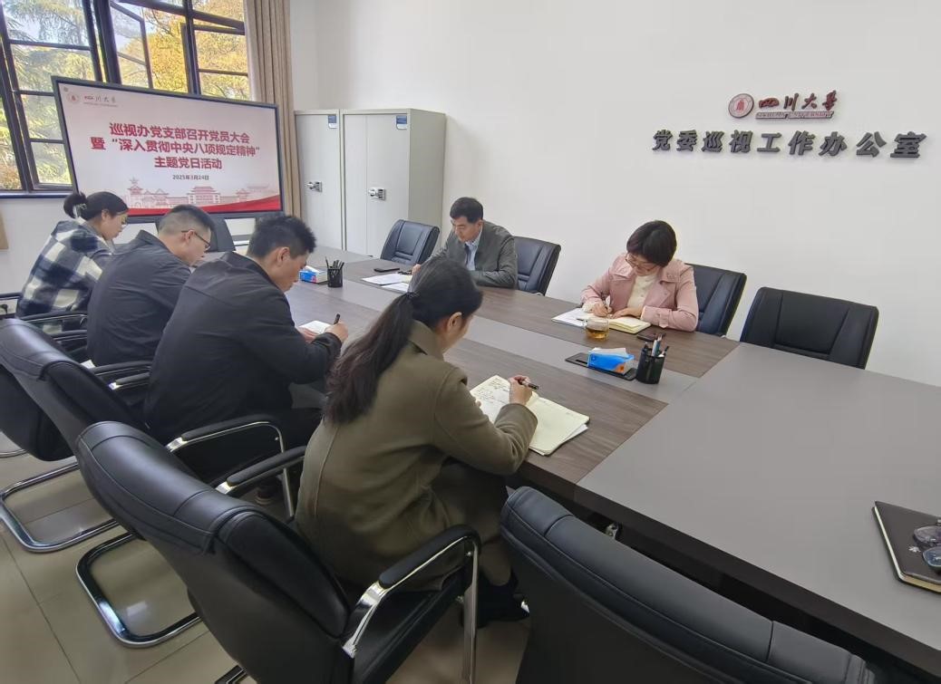 3月24日下午,巡视办党支部于行政楼211室召开深入贯彻中央八项规定精神学习教育启动布置会暨“深入贯彻中央八项规定精神”主题党日活动。会议传达学习了学校深入贯彻中央八项规定精神学习教育启动部署会和机关党委学习教育启动部署会的会议精神,对支部开展深入贯彻中央八项规定精神学习教育作出工作布置,要求支部全体党员、干部坚持走在前、做表率,扎实开展好学习教育。